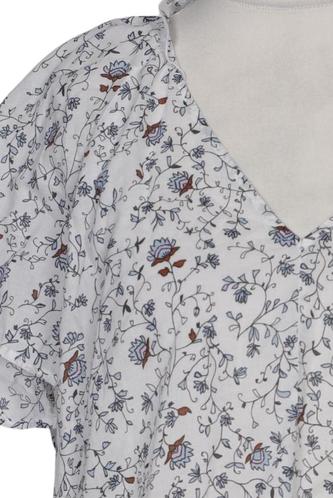 | Details | Rüschen, Kurzarm, V-Ausschnitt, verschlusslos, Floral |