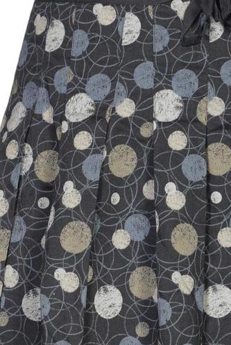 | Details | Plissee, Bindegürtel, Seitreißverschluss, Punkte |