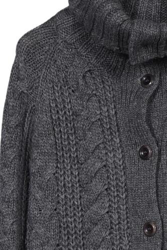 | Details | Grobstrick, Langarm, Rollkragen, Front Knopfleiste, Einfarbig |