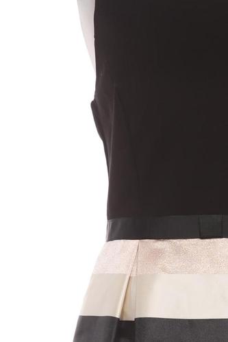 | Details | Satin, Plissee, ärmellos, Rundhals, Reißverschluss/Knöpfe hinten, Streifen |
