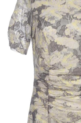 | Details | Spitze, Kurzarm, Rundhals, Reißverschluss/Knöpfe hinten, Floral |