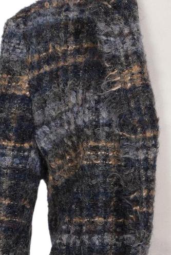 | Details | Fransen, Grobstrick, Langarm, V-Ausschnitt, Front Knopfleiste, Kariert |