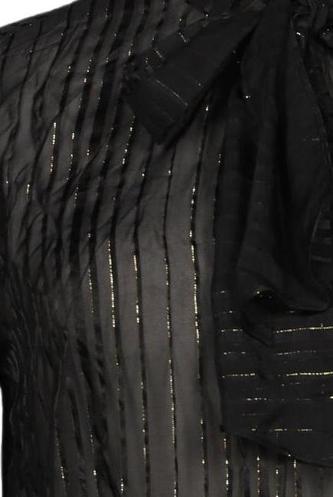 | Details | Chiffon, metallic, Langarm, V-Ausschnitt, verschlusslos, Streifen |