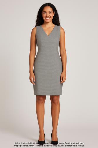| Details | ärmellos, Bindegürtel, V-Ausschnitt, Reißverschluss/Knöpfe hinten, Nadelstreifen |