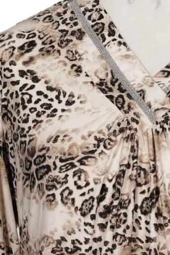 | Details | Strass, Jersey, Langarm, V-Ausschnitt, verschlusslos, Leopard |