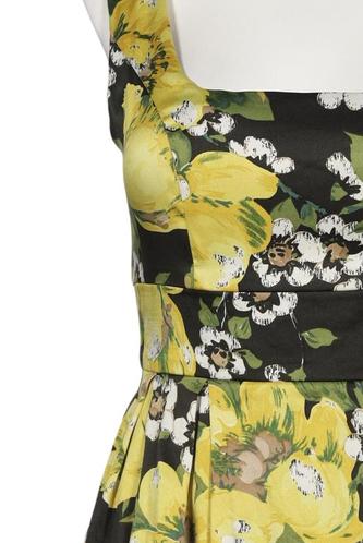 | Details | Satin, ärmellos, Bindegürtel, V-Ausschnitt, Reißverschluss/Knöpfe hinten, Floral |