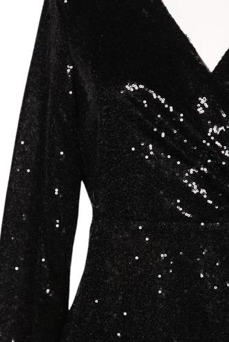 | Details | Pailletten, Langarm, V-Ausschnitt, Reißverschluss/Knöpfe hinten, Einfarbig |