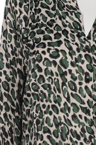 | Details | Satin, Langarm, V-Ausschnitt, verschlusslos, Leopard |