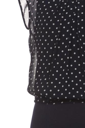 | Details | Jersey, Chiffon, Kurzarm, Rundhals, Reißverschluss/Knöpfe hinten, Punkte |