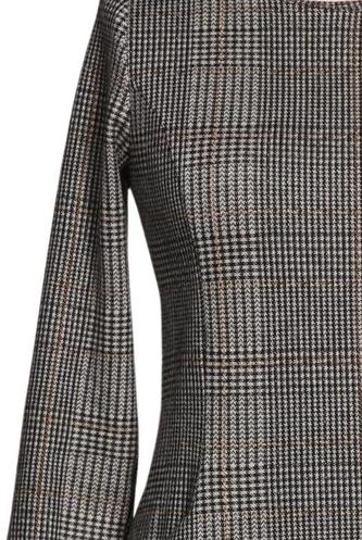 | Details | Grobstrick, Dreiviertelarm, Rundhals, Reißverschluss/Knöpfe hinten, Kariert |