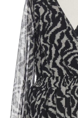 | Details | Rüschen, Tüll, Langarm, V-Ausschnitt, Zebra |