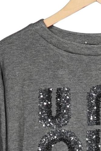 | Details | Jersey, Pailletten, Langarm, Rundhals, Motivprint |
