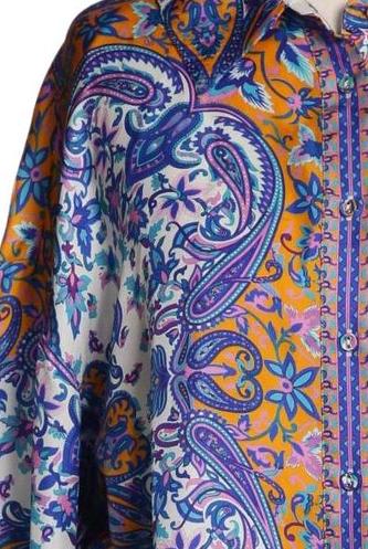 | Details | Satin, Langarm, Front Knopfleiste, Paisley |