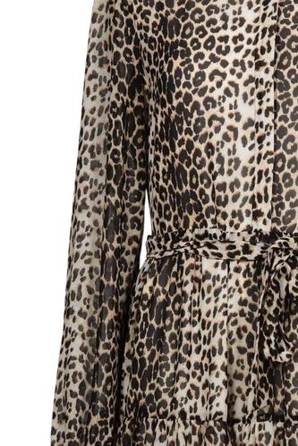 | Details | Chiffon, Langarm, Bindegürtel, Rundhals, Front Knopfleiste, Leopard |