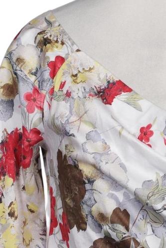 | Details | Jersey, Dreiviertelarm, Wickeloptik, V-Ausschnitt, verschlusslos, Floral |