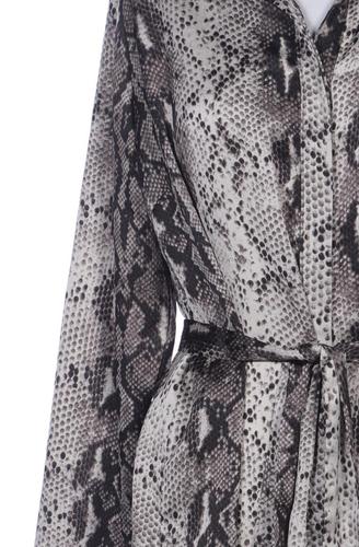 | Details | Satin, Langarm, Bindegürtel, V-Ausschnitt, Front Knopfleiste, Motivprint |