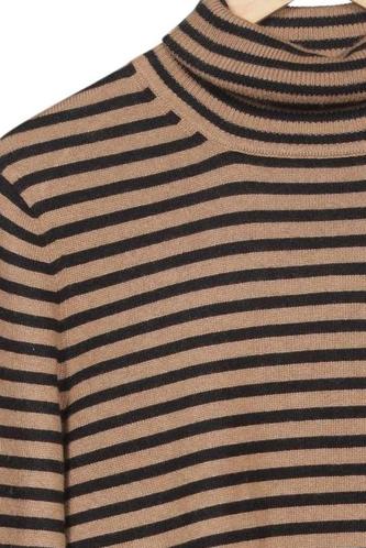 | Details | Grobstrick, Langarm, Rollkragen, Streifen |