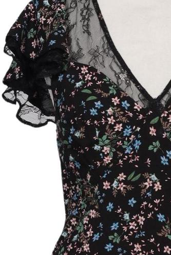 | Details | Spitze, Rüschen, Kurzarm, V-Ausschnitt, Reißverschluss/Knöpfe hinten, Floral |