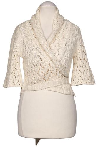 | Details | Gehäkelt, Grobstrick, Dreiviertelarm, Bindegürtel, Wickeloptik, Einfarbig |