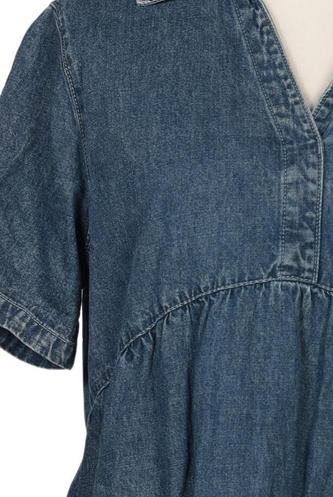 | Details | Jeans, Rüschen, Kurzarm, V-Ausschnitt, Front Knopfleiste, Einfarbig |
