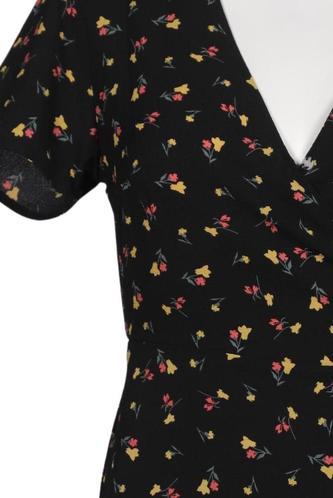 | Details | Rüschen, Kurzarm, Wickeloptik, V-Ausschnitt, Floral |