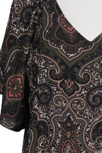 | Details | Jersey, Kurzarm, V-Ausschnitt, verschlusslos, Paisley |