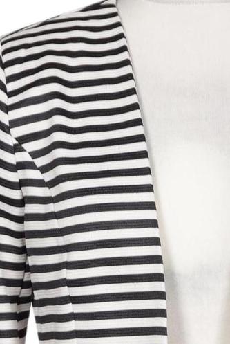| Details | Jersey, Langarm, V-Ausschnitt, verschlusslos, Streifen |