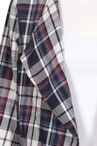| Details | Langarm, V-Ausschnitt, Front Knopfleiste, Kariert |