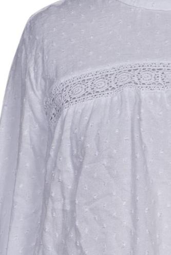 | Details | Spitze, Lochstickerei, Langarm, Rundhals, verschlusslos, Einfarbig |