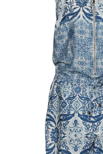 | Details | ärmellos, Bindegürtel, Rundhals, Front Reißverschluss, Floral |