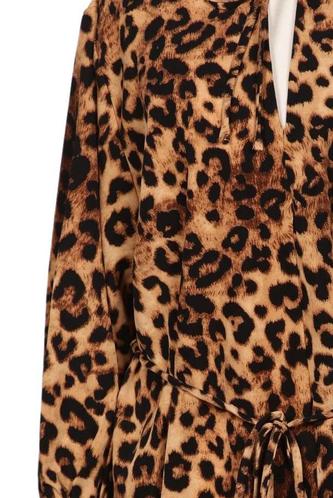 | Details | Langarm, Bindegürtel, V-Ausschnitt, Leopard |