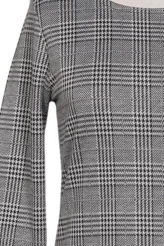| Details | Grobstrick, Dreiviertelarm, Rundhals, Reißverschluss/Knöpfe hinten, Kariert |