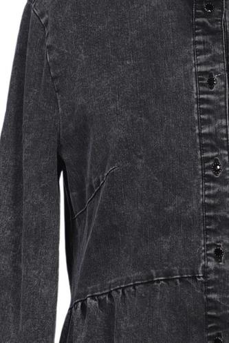 | Details | Jeans, Rüschen, Langarm, Rundhals, Front Knopfleiste, Einfarbig |
