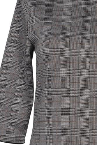 | Details | Jersey, Dreiviertelarm, Rundhals, Reißverschluss/Knöpfe hinten, Kariert |