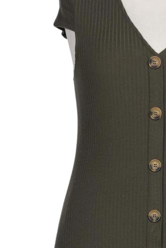 | Details | Ripp, Kurzarm, V-Ausschnitt, Front Knopfleiste, Einfarbig |