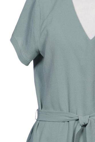 | Details | Jersey, Kurzarm, Bindegürtel, V-Ausschnitt, Einfarbig |