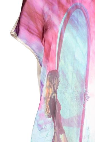 | Details | Satin, Kurzarm, Rundhals, Reißverschluss/Knöpfe hinten, Motivprint |