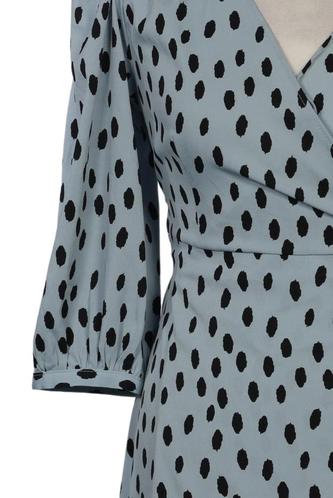 | Details | Rüschen, Dreiviertelarm, Bindegürtel, Wickeloptik, V-Ausschnitt, Punkte |