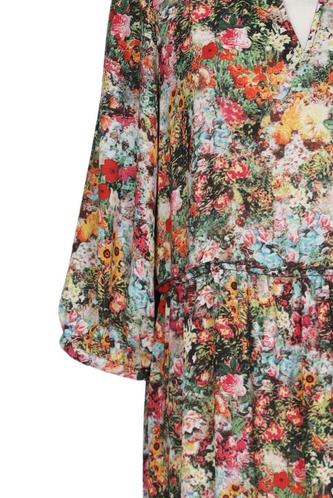 | Details | Rüschen, Dreiviertelarm, V-Ausschnitt, Floral |