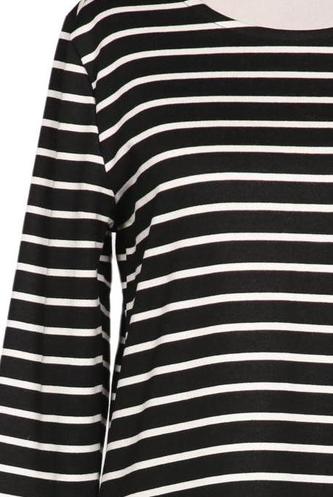 | Details | Jersey, Dreiviertelarm, Rundhals, Reißverschluss/Knöpfe hinten, Streifen |