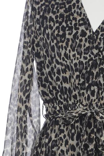 | Details | Chiffon, Langarm, Bindegürtel, V-Ausschnitt, Leopard |