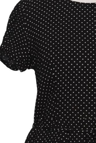 | Details | Jersey, Kurzarm, Bindegürtel, Rundhals, Reißverschluss/Knöpfe hinten, Punkte |