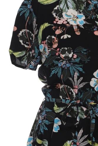 | Details | Chiffon, Kurzarm, Bindegürtel, Rundhals, Floral |