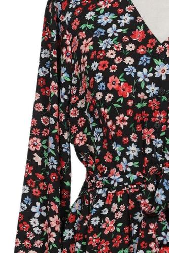 | Details | Chiffon, Langarm, V-Ausschnitt, Gummizug/Tunnelzug, Floral |