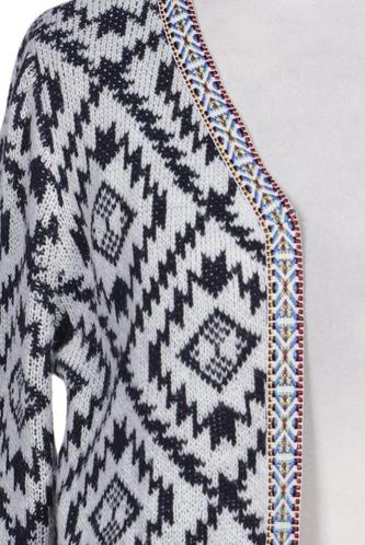 | Details | Fransen, Grobstrick, Langarm, verschlusslos, Rauten |