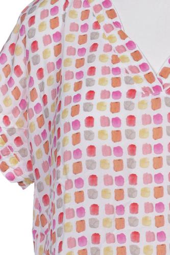 | Details | Satin, Kurzarm, V-Ausschnitt, verschlusslos, Motivprint |