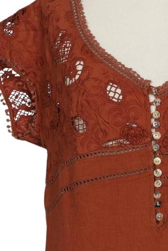 | Details | Stickerei, Spitze, Kurzarm, V-Ausschnitt, Floral |