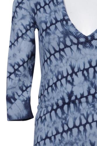 | Details | Grobstrick, Dreiviertelarm, V-Ausschnitt, Batik |