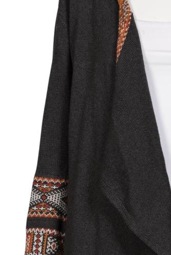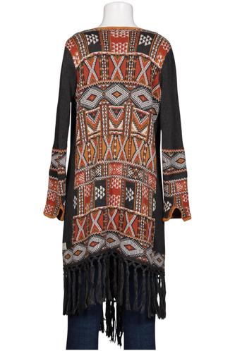 | Details | Fransen, Grobstrick, Langarm, verschlusslos, Ethno |