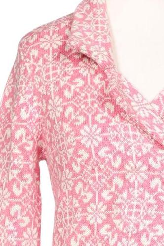 | Details | Grobstrick, Langarm, Bindegürtel, Wickeloptik, Floral |